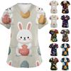Dámské velikonoční potištěné topy s krátkým rukávem a výstřihem do V, pracovní kapsa, halenka