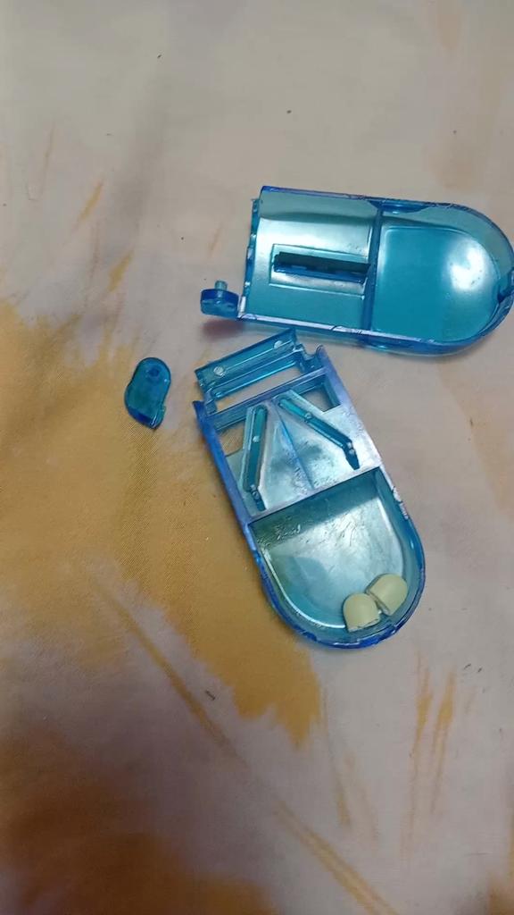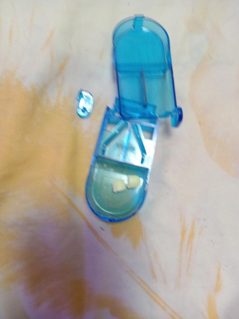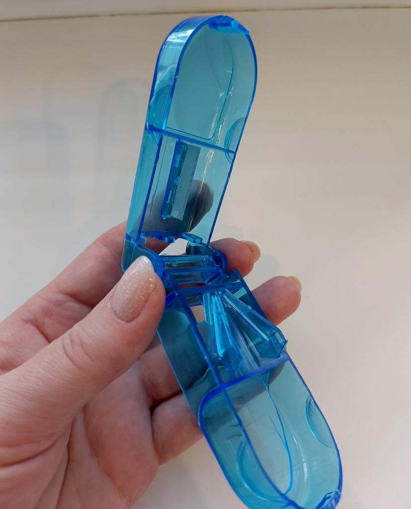 Velmi pohodlné zařízení. Uvnitř je ostrá čepel, která bez námahy rozřeže tablety jakékoli velikosti na polovinu.