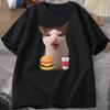Dámská trička nadměrné velikosti s potiskem koček a žraloků, bavlněná trička s kulatým výstřihem, letní zvířecí Y2K móda, ležérní oversize černá trička