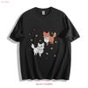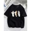 Nadměrná velikost kočky Žralok s potiskem Dámská trička s kulatým výstřihem Bavlněné topy Summer Animal 90S Neformální oversize černá trička