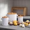 - 【Vlastnost】Kuchyňské dózy na česnek, brambory a cibuli s dřevěným víkem jsou stohovatelné, což zabírá méně místa na vašich kuchyňských linkách.