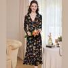 Módní šaty s květinovým potiskem s výstřihem do V a zvonovými rukávy pro ženy plus size