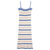 WTEMPO Sleeveless Knitted Long Dress Women Striped Vintage Strap Backless Bodycon Elegant Korean Chic Dress