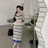 WTEMPO Dámské pruhované vintage pletené dlouhé šaty bez rukávů se špagetovými ramínky, bez zad, přiléhavé, elegantní, korejský šik