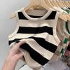 Dámský tílko bez rukávů, krátký top, kulatý výstřih, základní pletené pruhované tílko, pro teenagery