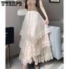 WTEMPO Letní polosukně ze síťovaného šifonu Plisovaná sukně s vysokým pasem Úzká dortová sukně střední délky