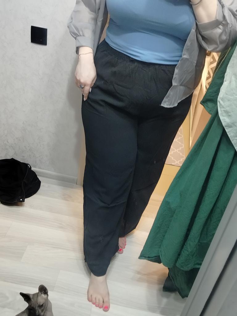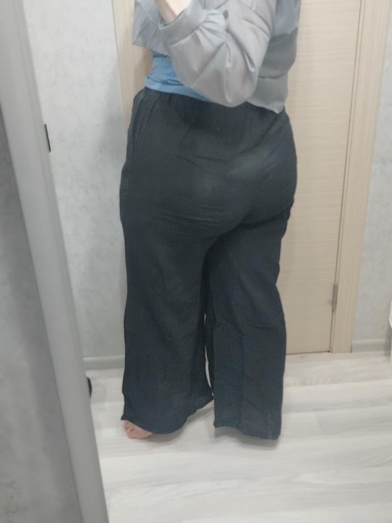 Brala jsem velikost 50. Běžné široké kalhoty. Tkanina: bavlna. Na fotce vypadají jako kalhoty a sukně. To je špatně. V létě v nich není horko