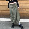 Americká retro cargo sukně pro ženy Letní design s rozparkem Šňůrka s vysokým pasem Středně dlouhá sukně Y2k Streetwear Módní oblečení