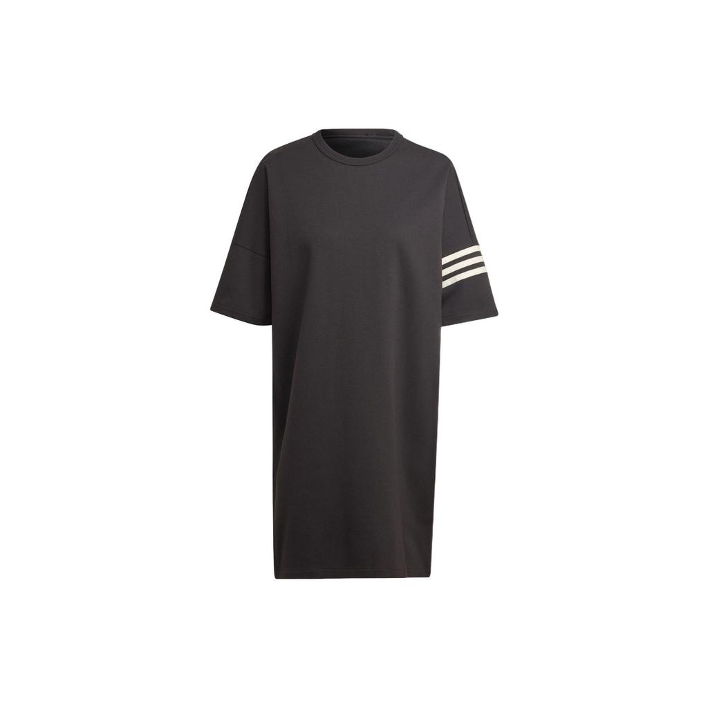Adidas Originals Trefoil Striped Crew Neck Straight Cut Short Sleeve Dress Women Dress Black HM1773