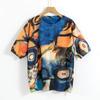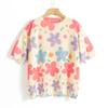 Dámské ležérní pletené topy do O s krátkým rukávem jarní pletené svetry s květinovým potiskem dámské prodyšné triko