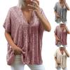 Dámské volné halenky s krátkým rukávem a výstřihem do V s třpytivými flitry