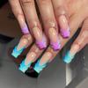 24ks Lesklý modrý a fialový nasazovací lis na nehty - Středně dlouhé čtvercové umělé nehty pro ženy a dívky