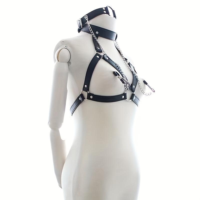 2ks BDSM Mouth O Ring Gag Svorka na bradavky Korzet Opasek Sexuální hračka Produkty pro dospělé Sexy Bondage SM Collar Restraint Ústa pouta Kožený trénink