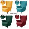 Sametový strečový potah na křeslo s křídly, spandexový elastický potah na křeslo s vysokým opěradlem, potahy na křesla, potahy na pohovku s povlakem na sedák