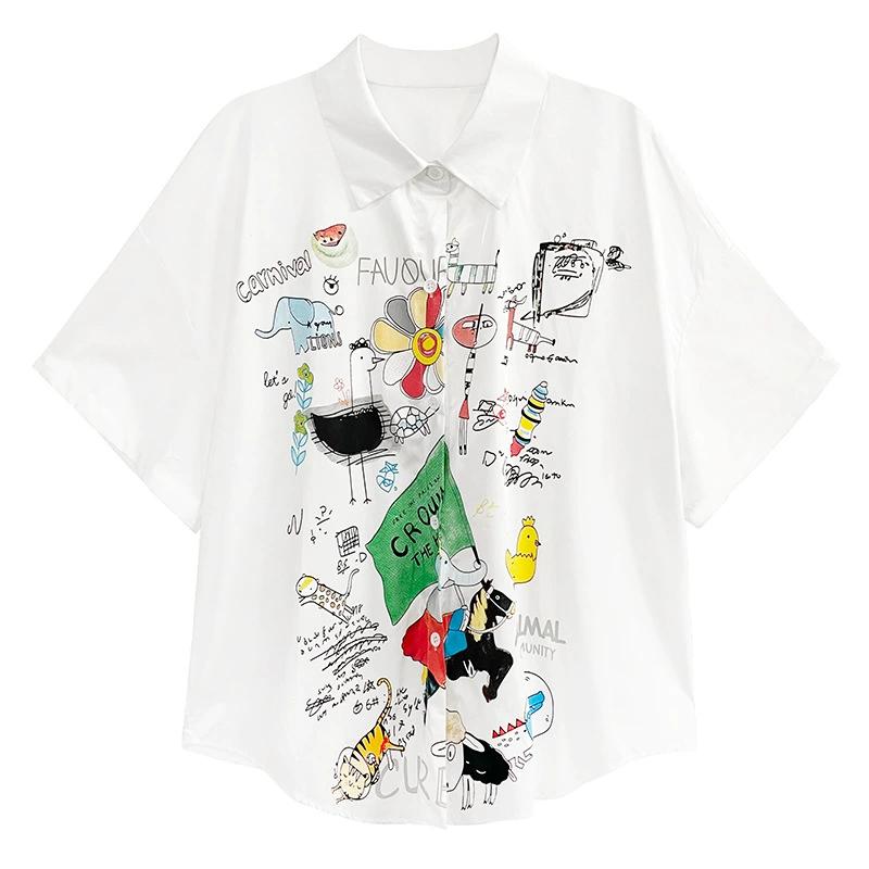 DIMANAF 2024 Plus velikost Nová halenka v letním stylu Vintage Retro design Krátký rukáv Barevný potisk Ležérní košile Ženy Volná košile s potiskem