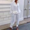 Módní Dámský oblek Šroubovací Volný Stojáček Košile Dlouhý rukáv Kapsa Kalhoty s šněrovacím lemem