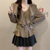 Francouzské volánkové tričko s V-výstřihem a zeštíhlujícím spodním dílem pro jaro a podzim pro ženy, krásná malá košilka