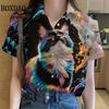 Cartoon Cats Print Women's T-Shirts Oversized V-Neck Shirts Girls Kawaii Casual Tops Summer Street Short-Sleeve Women T-Shirts