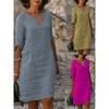 Dámské nové letní sedmibodové rukávy z bavlny a lnu Malé šaty s výstřihem do V Patchwork Vintage jednobarevné šaty