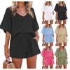 Dámská neformální móda Sexy šortky s kulatým výstřihem a krátkým rukávem z texturované tkaniny