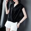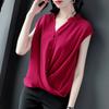 Šifonová košile s výstřihem do V Dámská letní zakrývající břicho Blůza Krátký rukáv Volný Temperament Bez rukávů Štíhlá Jednobarevná Velká velikost Košile Dámský letní top