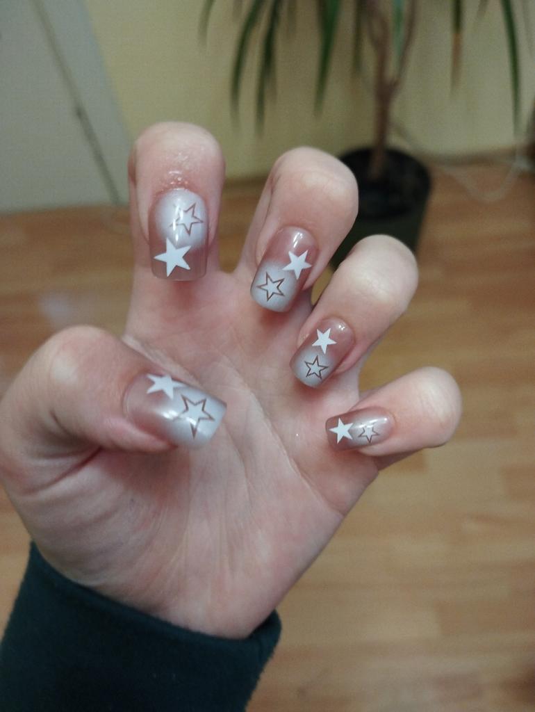 24ks/set Nálepka na falešné nehty s hvězdným přechodem Krátká nositelná manikúra Vodotěsné falešné nehty