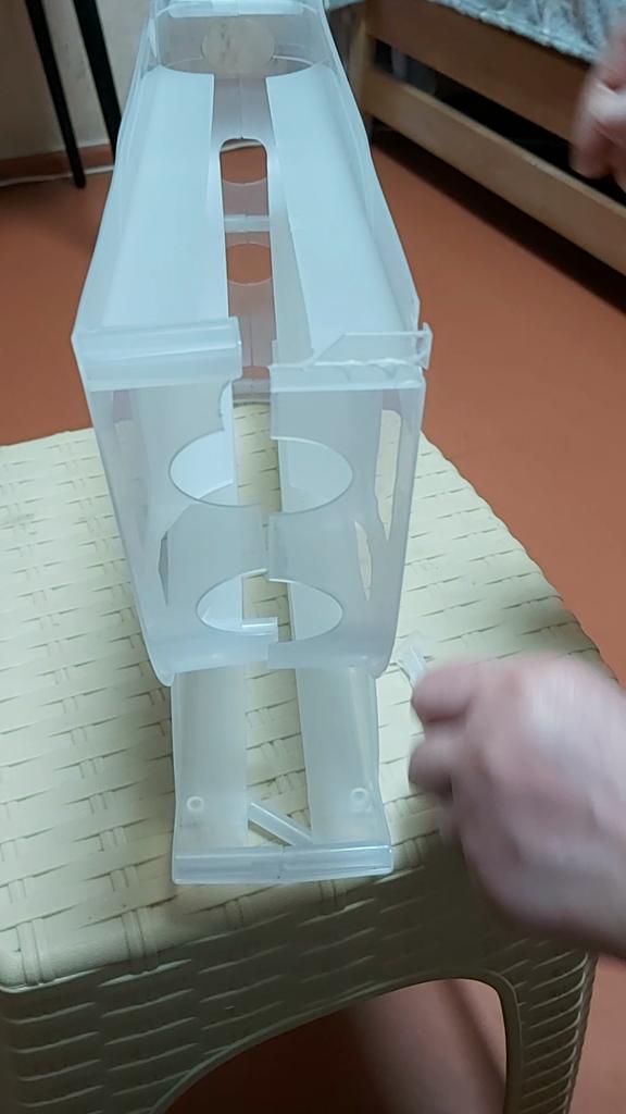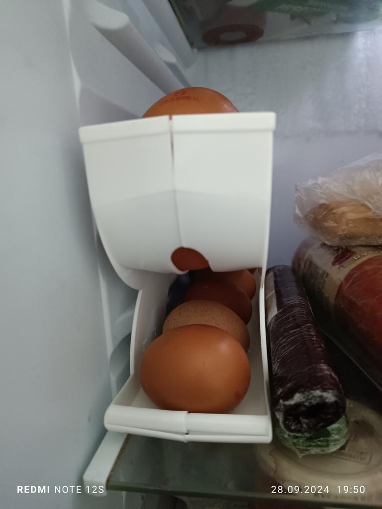 Úplná kravina. Nevejde se na dveře lednice, nedá se na ně pověsit. A je slabý, rozpadá se na dvě části. Téměř zničil všechna vejce. Položil jsem to na polici. Nemůžete dát vejce na čtvrtou vrstvu, je stlačena horní. Ano a je určen pouze pro malé. Stejně jako u mého domova, můžete to jen dát s sebou.