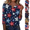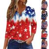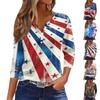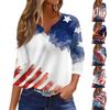 Women's Fashion Casual T-Shirt V-Neck Seven Sleeve Independence Day Printed Button Top