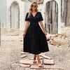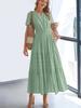 Letní neformální šaty s V-výstřihem a nabíranými rukávy, volná vrstvená A-line splývavá dlouhá sukně