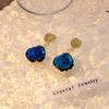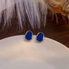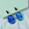 Tajemství oceánu, elegantní modré kovové náušnice s nepravidelnými sklady, vintage geometrické eliptické ušní kapky pro ženy