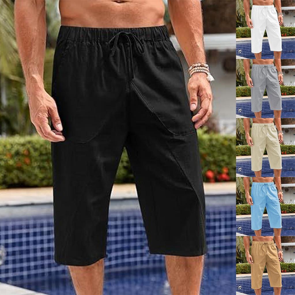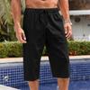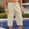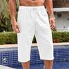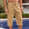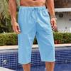 Pánské volné bavlněné a lněné kalhoty Plážové ležérní sportovní kalhoty Jednobarevné Sedmibodové šortky z bavlny a lnu