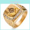 Nový příchod Bling CZ Crystal Men Rings s Freemason Masonic Free Mason Signet 316L z nerezové oceli zlaté barvy pro muže