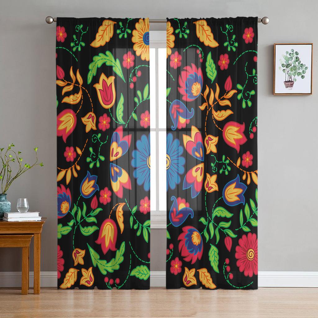 Mexický festivalový vzor Textura Voál Průsvitné závěsy Obývací pokoj Okno Šifon Tylová záclona Kuchyně Ložnice Závěsy Bytová dekorace