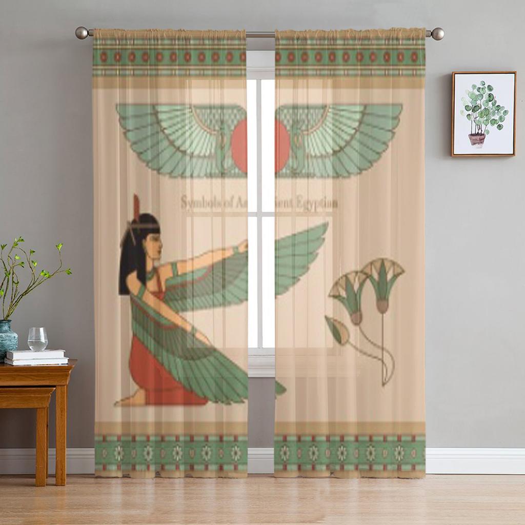 Staroegyptská žena s křídly Luxusní průsvitné šifonové závěsy pro dekoraci obývacího pokoje a ložnice Okenní záclonky Tyl