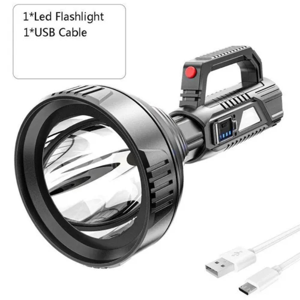Portable Flashlight with LED Bulb Searchlight Big Beam Long-Range Flashlight USB Rechargeable Led Outdoor Flashlight Lantern