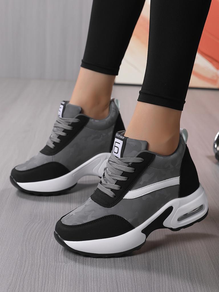 Women's Walking Sneakers Wedges High Top Lace Up Shoes Air Cushion Increased internal Fashion Girls Sneakers Grey
