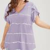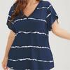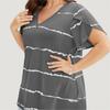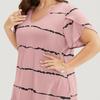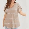 Dámské letní tričko s krátkým rukávem a V-výstřihem, pruhovaným potiskem, volné, s volánkovými krátkými rukávy, ležérní, prodyšné, pohodlné, na práci, dovolenou, plus size top(XL~5XL)