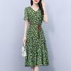 Západní styl květinový výstřih do V 2024 Nové letní temperamentní ženy Pokrývají maso a tenké módní šifonové šaty Ženy
