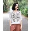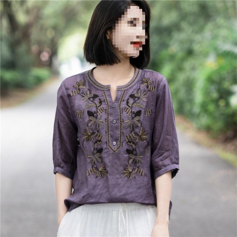 Summer Women's Fashion Embroidery Spliced V Neck Shirt Clothing Vintage Loose Casual Half Sleeve Blouse Soft Solid Color