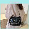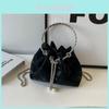 Mini taška se stahovací šňůrkou s perlovým řetízkem Tote Crossbody Kožená na telefon Stříbrná taška přes rameno