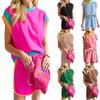 Dámský letní top s krátkým rukávem a šortky ve velkých velikostech, trendy volný pulovr s kulatým výstřihem, ležérní oblek