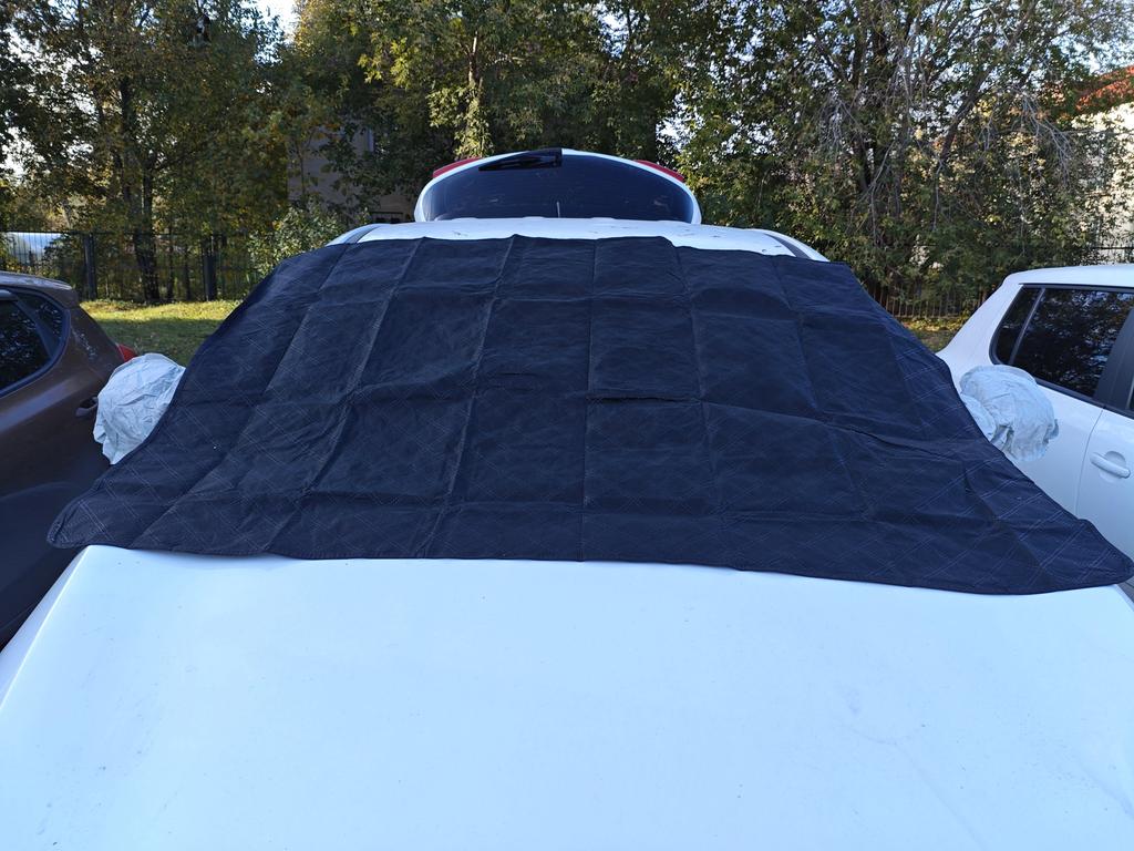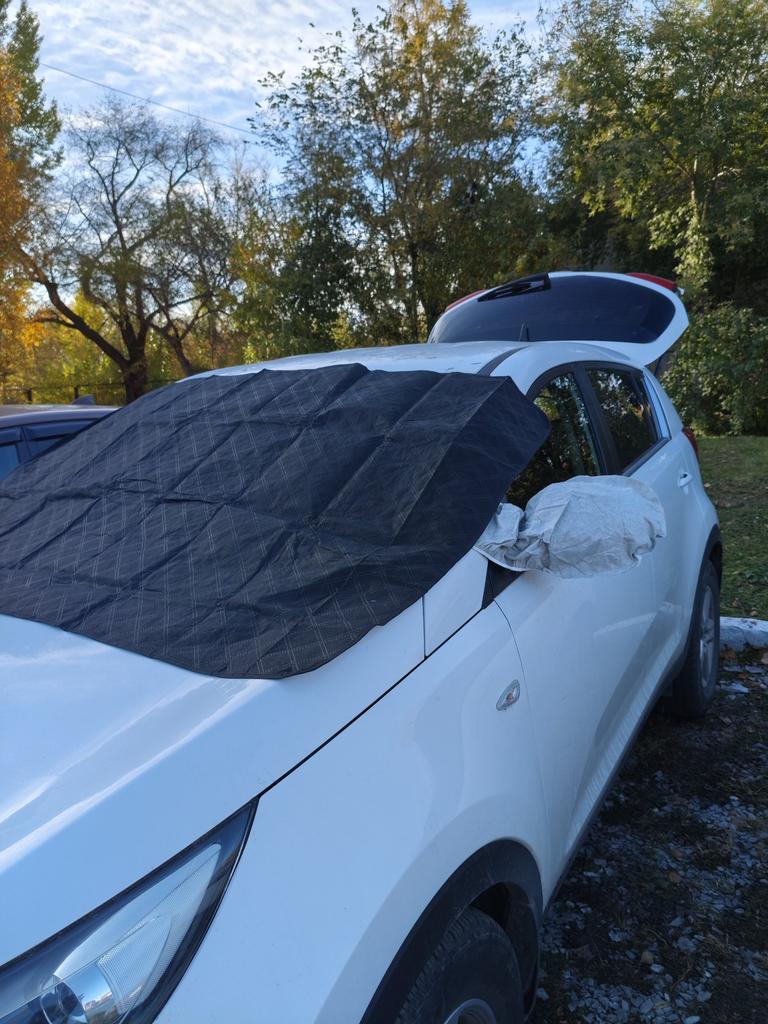 Kryt na čelní sklo seděl dobře, dokonce s rezervou. Dá se přivřít dveřmi, bude držet díky uším na zrcátkách. Magnety, myslím, slabě přilnou. Oboustranný povrch, lze vybrat zrcadlový a použít v létě, nebo tmavý. Zůstává otázka ohledně leštění tohoto materiálu skla, může poškrábat při větru.