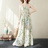 Halter Dlouhé Květinové Šaty Léto Bohémský Přímořský Dovolená Cestování Plážové Šaty Bavlna Len Velká Velikost Dlouhá Sukně