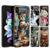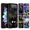 Luxury Case For Samsung Galaxy Z Flip 4 3 5G Black PC Hard Phone Cases Fashion Back Cover ZFlip Funda Cute Aniaml Cat Shell Sac