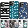 Pruhovaný kotva loď pouzdro na telefon pro iphone 5 5s se 6 6s 7 8 plus x 10 XR XS 11 12 13 mini pro MAX černý tpu zadní kryt