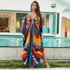 Plus Size Boho Cover Up, Dámské maxi šaty s V výstřihem, pletené čínským uzlem, s potiskem motýlů, volného střihu, plážový kaftan