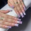 Umělé nehty Dlouhé Baletní Fialové Jemné Vlnky Lesklé Úlomky Sestavené Nehtové Dílky