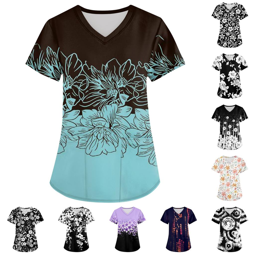 3.Vlastnost: Design košilí s krátkým rukávem, jarní podzimní trička pro ženy, trička s potiskem, trička s krátkým rukávem, košile s výstřihem do V.