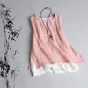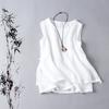 Dámské letní volné ležérní tílko s kulatým výstřihem a bez rukávů, dvouvrstvé, bavlněné a lněné topy