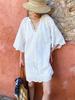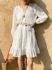 Bílé áčkové šaty s výstřihem do V, texturované, francouzský sváteční styl, dámské šaty, dovolenkový styl, plážový styl